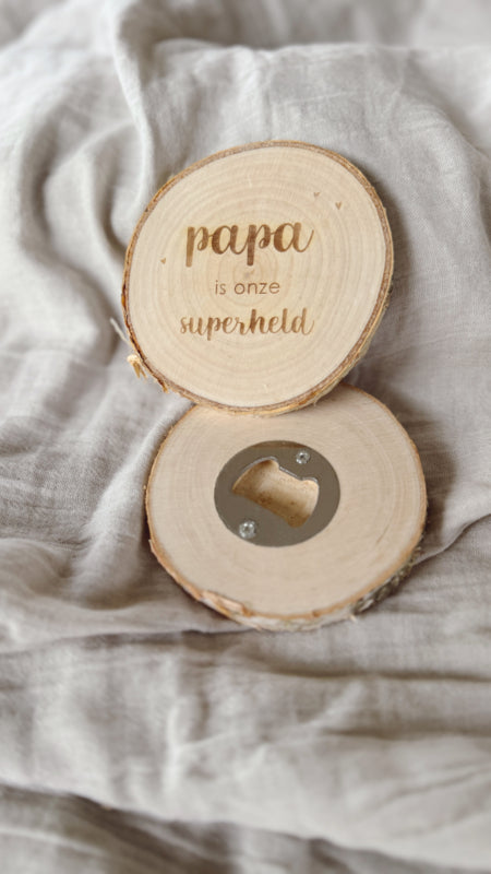 Het is bijna Vaderdag! Deze berkenhouten onderzetter met schorsrand en ingebouwde flesopener is een origineel cadeau dat zowel praktisch als persoonlijk is. De onderzetter wordt volledig gegraveerd met een tekst naar keuze, of zelfs met een tekening of handgeschreven boodschap van een kindje. Zo geef je een uniek en liefdevol aandenken dat dagelijks gebruikt kan worden.